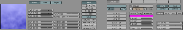 In the WorldButtons you can define settings that are scene-global. These are for example the mist (fog) settings, rendering of stars, the color and textures of the horizon and zenith.