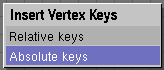 as this has been selected, a new dialog appears (Figure 2 in the Section called The IPO Curves in the chapter called Animation of Undeformed Objects) asking for Relative or