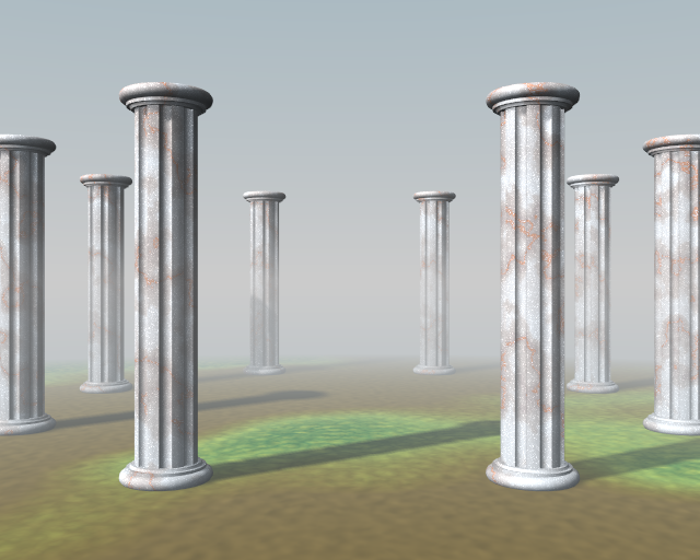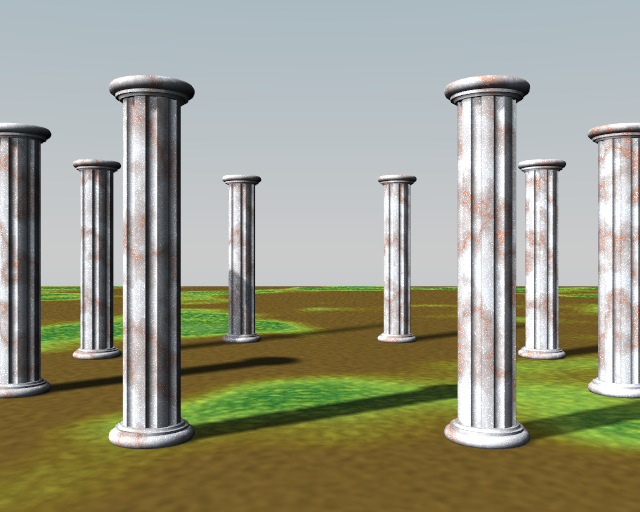 Figure 1 shows a setup with some columns in a circular pattern, whith some nice material of your choiche for columns and soil and a World defining sky colour.