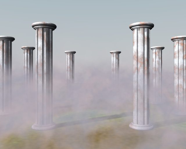 Use this texture on both Col and Alpha as a Mul texture, keeping al other settings to default. If you now render the scene the bases of your columns will be now masked by a cool mist (Figure 12). Please note that the Unified renderer gives much better results here.