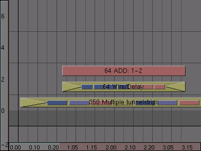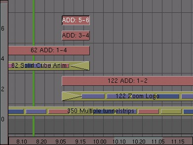 Now go to the end of the tunnel animation strip. There should be enough place to put the logo zoom animation at the end and still have some space left before it (Figure 46). If not, select the tunnel strip, press TAB and add a duplicate of the animation to the end. Press TAB again to leave meta edit mode.