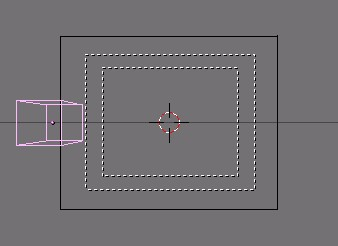 Let's start with something simple and see where it leads. Start a clean Blender and remove the default plane. Split the 3D window and switch one of the views to the camera view with NUM 0. In the top-view, add a cube and move it just outside of the dotted square that indicates the camera view. Figure 2.