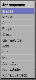 Add a movie to the window by pressing SHIFT-A and selecting 'Movie' (Figure 7). From the File Select window select the wireframe cube animation that you made before.