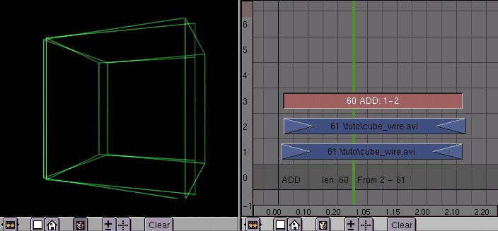 You now have a 'cube_solid.avi' and 'cube_wire.avi' on your hard disk. This is enought for our first sequence editing.