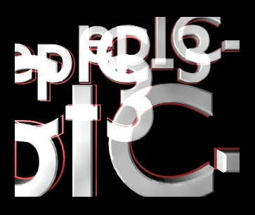 Let's create some morerandomness and chaos! Take a logo (We can just add a text object) and make it jump through the screen. Again, the easiest way to do this is to add vertices directly into the IPO window (select a LocX, LocY or LocZ channel first), but this time you may need to be a bit more careful with the minimum and maximum values for each channel. Don't worry about the looks of this one too much - the next step will make is hardly recognizable anyway. (Figure 32).