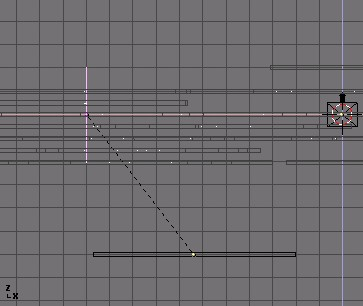 Next switch to front view and add another plane. Scale it along the X-axis to turn it into a rectangle (press SKEY and move your mouse horizontally. Then click MMB to scale along the indicated axis only). Give the rectangle a white material with an emit value of one.