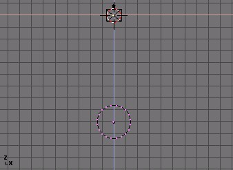 Start a new scene (CTRL-X) and delete the default plane. Switch to front view (NUM 1). Add a 20-vertex circle about 10 units under the z=0 line (the pink line in your screen) (Figure 23).