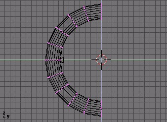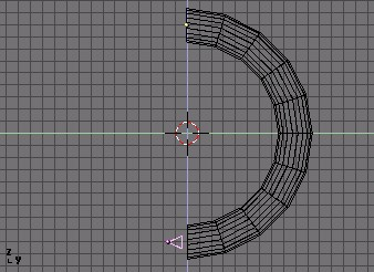 We want to turn the circle into a circular tube, or torus. For this, we will use the Spin function. Go to the Edit Buttons window (F9) and enter a value of 180 in the Degr NumButton and enter '10' in the Steps one. Pressing Spin will now rotate the selected vertices around the cursor at 180 degrees and in 10 steps. (Figure 24).