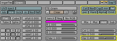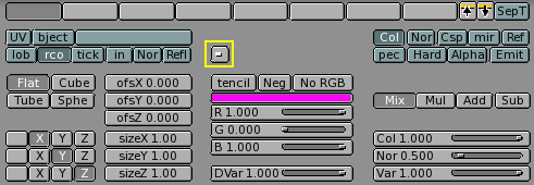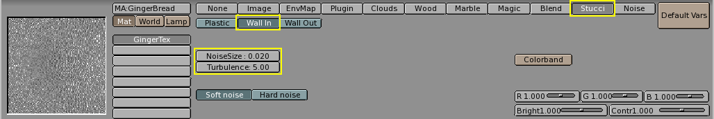 Press the small button with a white square on the right of the Material Buttons, in the Textures area Figure 34 and select Add new. We're adding a texture in the first channel. Give it some name like "GingerTex"