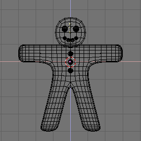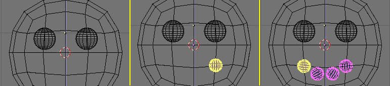 Now you have learned the trick, add three more of these ellipsoids to be Gus buttons. Once you have made one, you can simply go out of Edit Mode, press SHIFT D to create a duplicate and move it in place like in Figure 44.