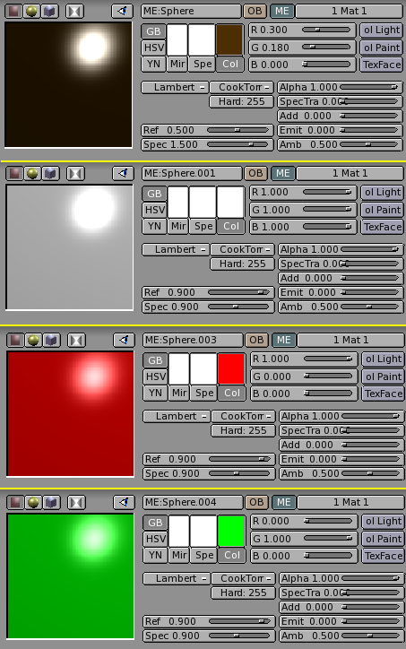 To give an Object the same material as another object, select that material in the list which appears when you press the button with the white square in the ButtonWindow toolbar. |