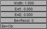 The 'bevel' Object. Fill in the name of another Curve Object; this now forms the bevel. For each interpolated point on the curve, the 'bevel Object' is, as it were, extruded and rotated. With this method, for example, you can create the rails of a roller coaster with a 3D curve as the base and two small squares as bevels. Set the values "ResolU" of both Curves carefully, given that this beveling can generate many faces.