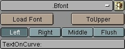 You can create fonts yourself within a Blender file. Each letter from this Font Object is then replaced by any Object you chose, and is automatically duplicated. This means that you can type with Objects! Objects to be considered as letters must belong to the same 'family'; they must have a name that corresponds to the other letter Objects and with the name that must be entered in this button. Important: set the option AnimButtons->DupliVerts ON! For example: