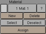 This button can be used to specify which Material should be shown, i.e. which Material is active. The first digit indicates the amount of Materials, the second digit indicates the index number of the active Material. Each face in a Mesh has a corresponding number: the 'Material index'. The same is true of Curves and Surfaces.
