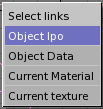 Press SHIFT-L to have the possibility to select all Objects sharing a link with the active one. You can select Objects sharing an IPO, Data, Material or Texture link (Figure 6).
