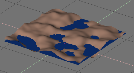 Ensure that you are in EditMode and all vertices are selected and switch to the EditButtons F9. Press the Noise button (Figure 48) several times until the landscape looks nice. Figure 49 shows the original - textured - plane as well as what happens as you press Noise. You should remove the texture from the landscape now because it will disturb the look. You can now add some lights, maybe some water, set smooth and SubSurf the terrain, etc. (Figure 50).