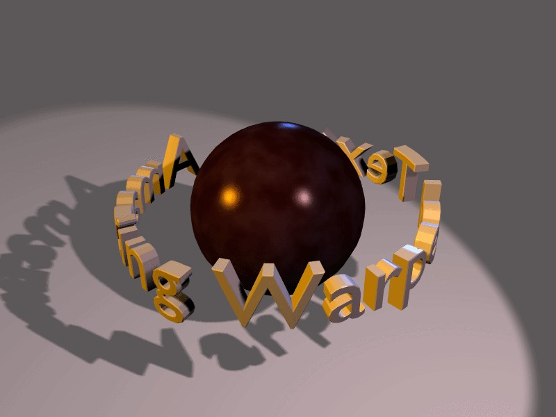 A piece of text wrapped into a ring shape is useful in flying logos, but it would be difficult to model without the warp tool. We will warp the phrase "Amazingly Warped Text" around a sphere. First add the sphere.