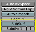 SubSurf is a Mesh option, the button to activate this is in the EditButtons F9 (Figure 55). The NumButtons immediately below it define, on the left, the resolution (or level) of subdivision for 3D visualization purposes, the one on the right the resolution for rendering purposes.