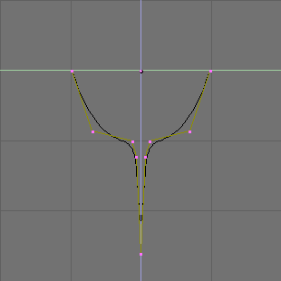 Now select all curves (with AKEY or BKEY) and join them together (by CTRL-J and by answering positively to the question 'Join selected NURBS?'). This will lead to the configuration of Figure 37