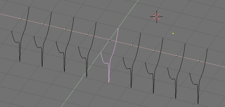 Note that the surface which will be obtained will go smoothly from one profile to the next. To have abrupt changes it is then necessary to place profiles quite close one to the other, as it is the case for the selected profile in Figure 36.