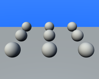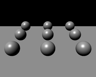 The results of an Hemi Light for the 9 sphere set up are shown in Figure 7 the superior softness of the Hemi light in comparison to the sun light is evident.