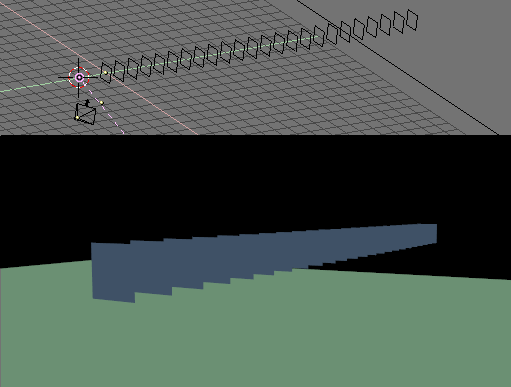 Figure 5 shows a second set-up, made by a series of planes 1 blender unit distant one from the other, lit with a Sun light. The uniformity of lighting is even more evident. This picture will be used as a reference to compare with other lamp types.