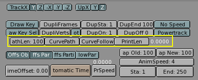 UpX, UpY, UpZ (RowBut) Specifies which axis must point 'upwards', in the direction of the (local) positive Z axis. If the Track and the Up axis coincides, it is deactivated.