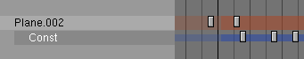 In the NLA window actions are displayed as a single strip below the object's strip; all of the keyframes of the action (constraint channel keyframes included) are displayed on one line.
