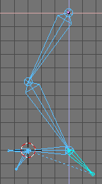 Start building a bone chain of three bones - one for the upper leg, the second one for the lower leg and the third one for foot. Now move the 3D cursor at the heel joint and add another bone - this will be the IK solver. Now add that bone as an IK solver constraint to the foot bone. (Figure 31).