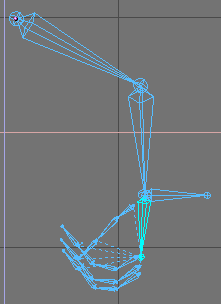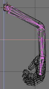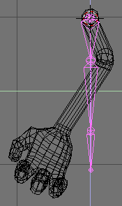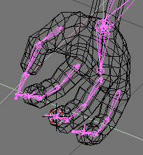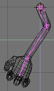 Position the 3D cursor at the beginning of the middle finger and in fron view start building a new chain, consisting of 4 bones (Figure 17). 3 of them will be the actual bones in the finger, and the fourth bone will be a null bone - this is a small bone, pointing to the palm, that will help turning the whole chain to an IK chain later.