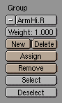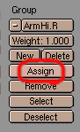Now press the "Assign" button in the edit buttons window (Figure 28). You've just added the selected vertices to the "ArmHi.R" vertex group. These vertices will be deformed by the "ArmHi.R" bone.