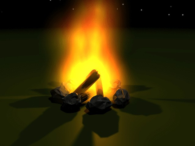 A test rendering will now display a nice fire. But we still need to make the particles fade out at the top of the fire. We can achieve this with a material animation of the Alpha and the Halo Size.