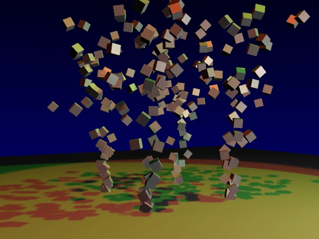 In the animation you will notice that all cubes share the same orientation. This can be interesting, but it can also be interesting to have the cubes randomly oriented.